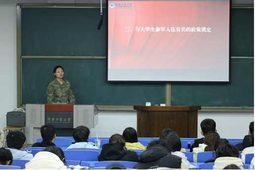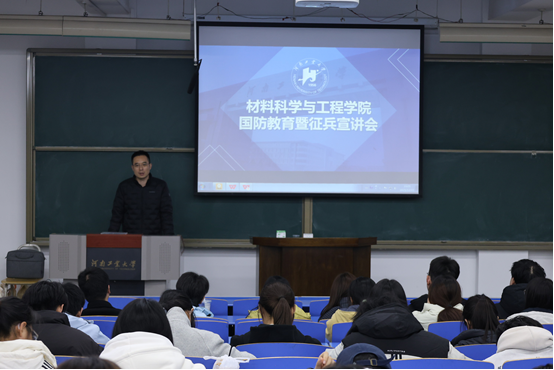 为厚植青年学子家国情怀,夯实国防教育育人根基,12月15日晚,材料科学与工程学院特邀学校退役大学生征兵宣讲团在4121多媒体教室举办了国防教育活动暨应征入伍宣讲会,学院党委副书记李建锋、全体辅导员和 200 余名有志应征入伍的同学参加了本次会议。