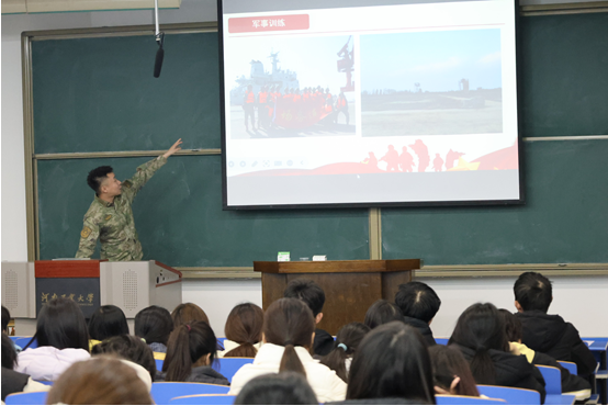 宣讲会上,学院党委副书记李建锋首先作动员讲话。他结合国防教育发展历程,深入剖析新时代国防建设的重要战略意义,强调大学生应征入伍既是响应国家号召的责任担当,更是青年群体淬炼成长、实现人生价值的重要路径。他指出,军营是锤炼意志的 "大熔炉",是增长才干的 "练兵场",能够让青年在艰苦磨砺中收获良好的身体素质、团结协作的能力、爱岗敬业的精神,在使命担当中明确人生方向,为未来发展积蓄强劲力量。