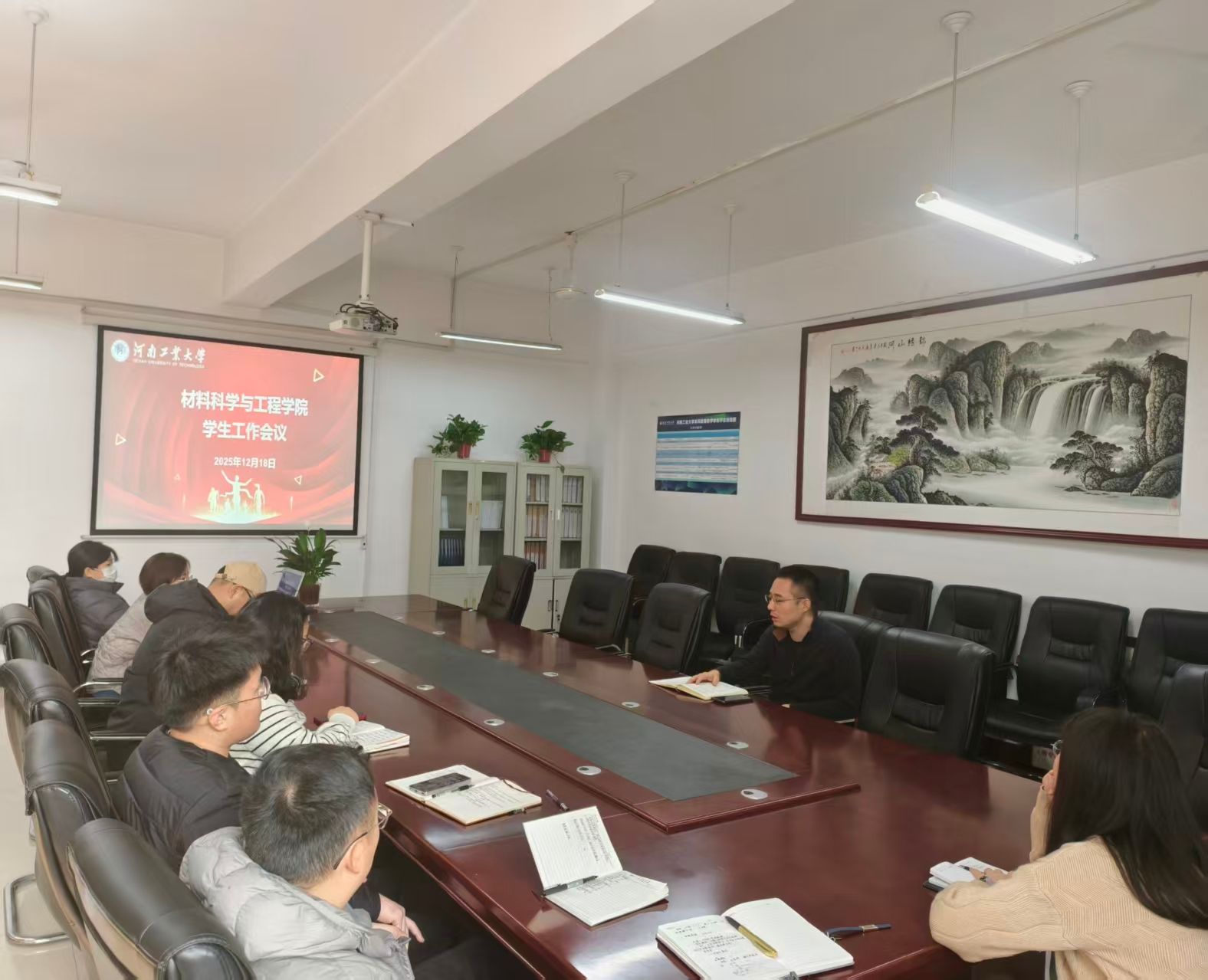12月18日上午,材料科学与工程学院在惟志楼407会议室召开学生工作会议。学院党委副书记书记李建锋、全体辅导员参会,会议聚焦常规工作汇报、学生动态分析及下一阶段工作部署。