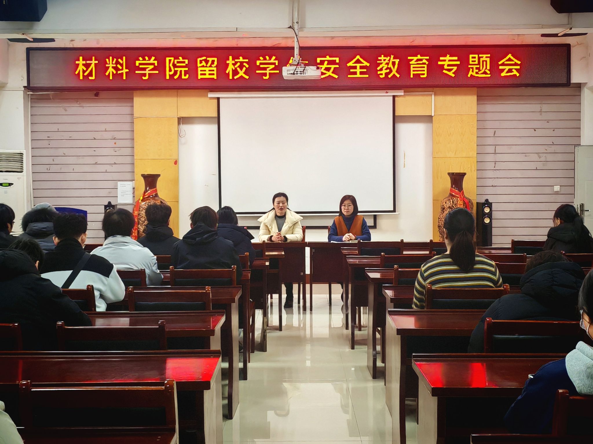 为切实做好寒假期间留校学生安全保障工作,强化学生安全意识与应急能力,1月23日下午,材料科学与工程学院在惟志楼31447会议室召开寒假留校学生安全教育专题会,院党委书记车愔、留校学生代表参加了会议。会议由学工办主任陈晶晶主持。