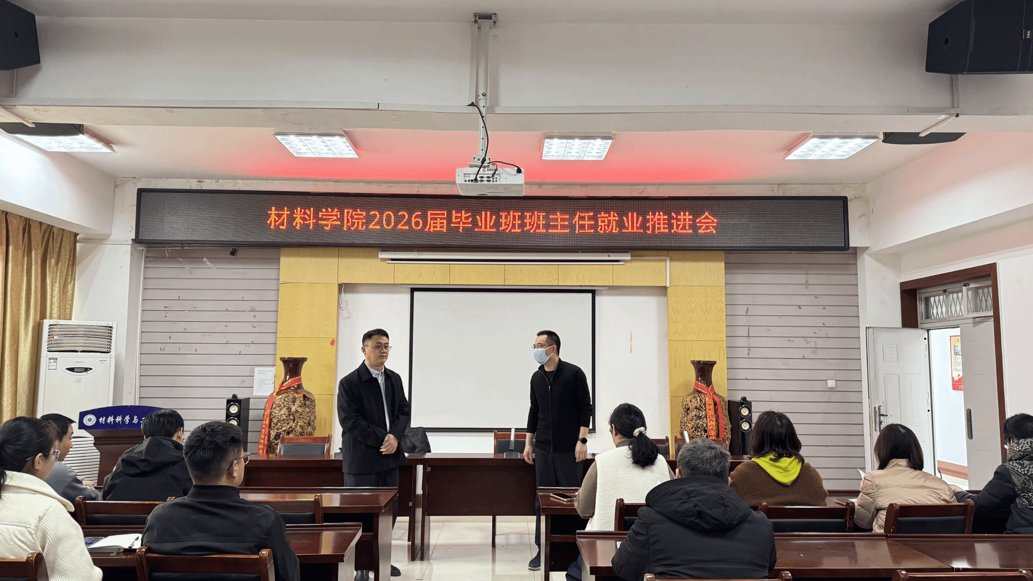 为统筹推进 2026 届毕业生就业与升学工作,精准抓实服务保障,3月12日,材料科学与工程学院在惟志楼31447会议室召开2026届毕业班班主任就业升学工作推进会。学院院长赵志伟、党委副书记李建锋、全体毕业班辅导员及班主任参会,会议由李建锋主持。