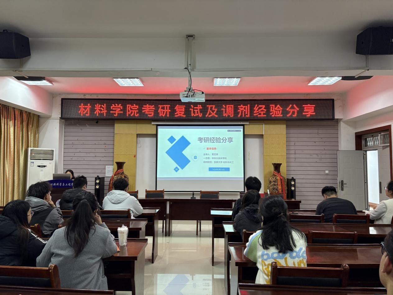 考研复试与调剂经验分享会的成功举办,是材料学院落实立德树人根本任务、关怀学生成长发展的重要举措,不仅为考研学子提供了精准、实用的升学指导,更以榜样力量激发了学院学子的学习热情,助力同学们以更从容的心态、更充分的准备迎接复试与调剂挑战,为学院优良学风建设与人才培养工作持续夯实基础。(材料学院 文/李金娜 王子太 审校/李建锋 审核/车愔)